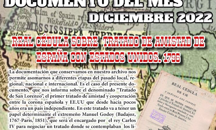 El Palacio de la Isla de Cáceres expone en diciembre como 'Documento del Mes' la Real Cédula sobre el tratado de amistad de España con Estados Unidos (EEUU) de 1796, denominado 'Tratado de San Lorenzo'.