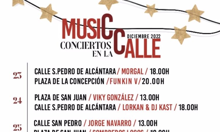 En total, se ofrecerán 15 conciertos de diferentes estilos, en cinco ubicaciones: la plaza de la Concepción, las calles San Pedro y San Pedro de Alcántara, la plaza de San Jorge y la plaza de San Juan.
