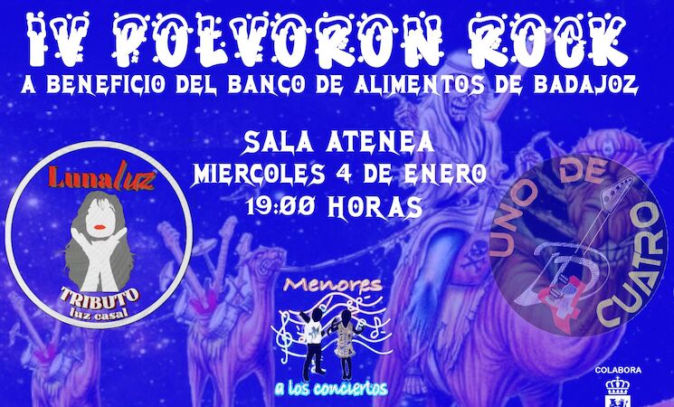 El IV Polvorón Rock se celebrará el próximo 4 de enero en la Sala Atenea de Badajoz, a las 19:00 horas, y un año más irá en beneficio del Banco de Alimentos.