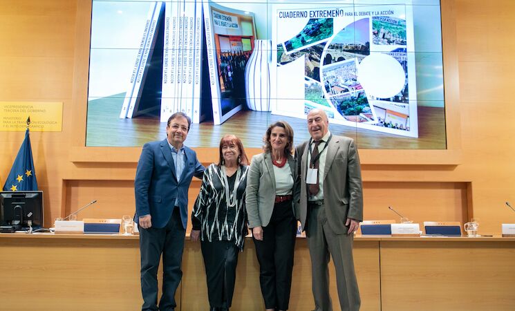 El presidente de la Junta de Extremadura, Guillermo Fernández Vara, asistió este pasado jueves, en el Ministerio para la Transición Ecológica y el Reto Demográfico, en Madrid, a la presentación del volumen 10 del "Cuaderno extremeño para el debate y la acción", lo que ha calificado como un "magnífico instrumento" coordinado por Juan Serna.