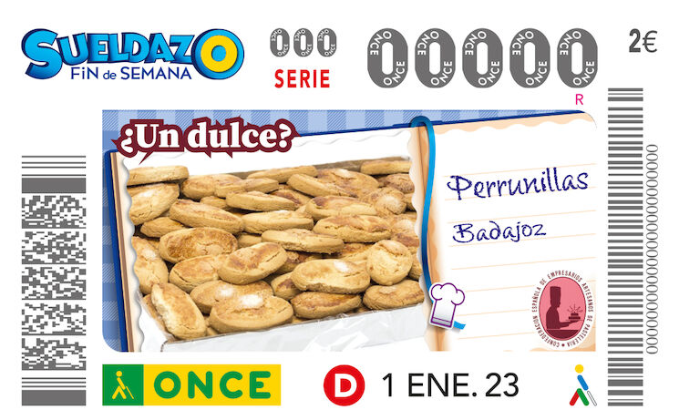 Las 'Perrunillas' y los 'Sapillos' protagonizan los cupones de la ONCE de los domingos 1 y 29 de enero respectivamente, pertenecientes a la serie '¿Un dulce?', con la que la organización difunde algunos de los platos más dulces y representativos de la rica gastronomía del país.