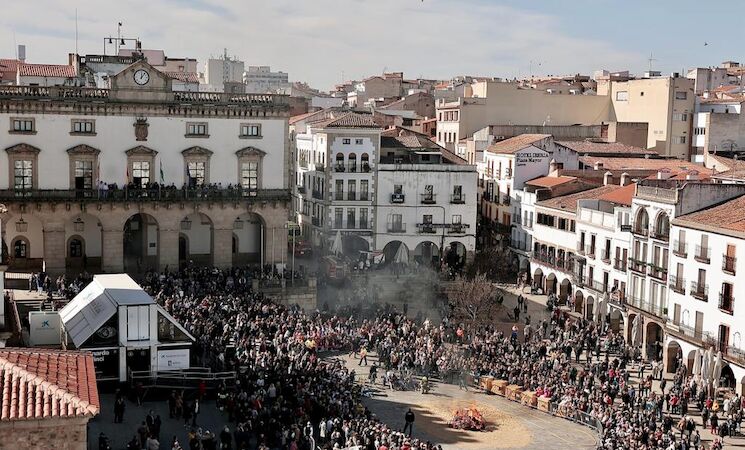 La Fiesta de Las Lavanderas y la quema del Pelele en la Plaza Mayor han dado paso al Carnaval de Cáceres que este año estrenará el martes como festivo, con una programación de actividades que se centran en la carpa instalada en la plaza pero también en diferentes barrios de la ciudad. La quema de los más de 15 peleles elaborados por diversos colectivos de la ciudad ha contado con una gran afluencia de cacereños que no han querido perderse esta tradición.