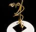 La propuesta ganadora, denominada “Cuidándote con corazón”, está hecha artesanalmente a mano, en hierro cortado, moldeado, lijado, pulido y con baño de metal dorado. La base presenta un acabado negro lacado en pintura de poliuretano de dos componentes y tiene una altura total de 30 cm.