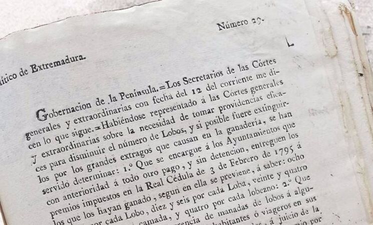 Así, en plena Guerra de la Independencia, en 1813, el Jefe Político de la Provincia de Extremadura Álvaro Gómez Becerra, recibe desde Cádiz donde se encuentran ubicadas las Cortes españolas, una orden dirigida a todos los pueblos cabezas de partido para que se hagan eco de la normativa relativa a la extinción de lobos de las sierras de Extremadura.