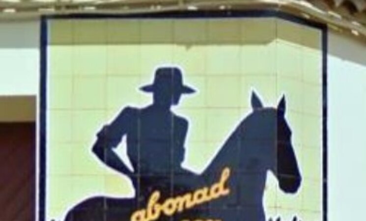 Esta composición de azulejos cerámicos muestra la "icónica imagen" del jinete al atardecer (con el que se identificaban los agricultores) con unas sencillas hojas en el horizonte y la bicromía en amarillo y negro que permite resaltar el imperativo ('abonad ya') y la marca del fertilizante ('Nitrato de Chile') en letras amarillas sobre el fondo oscuro.