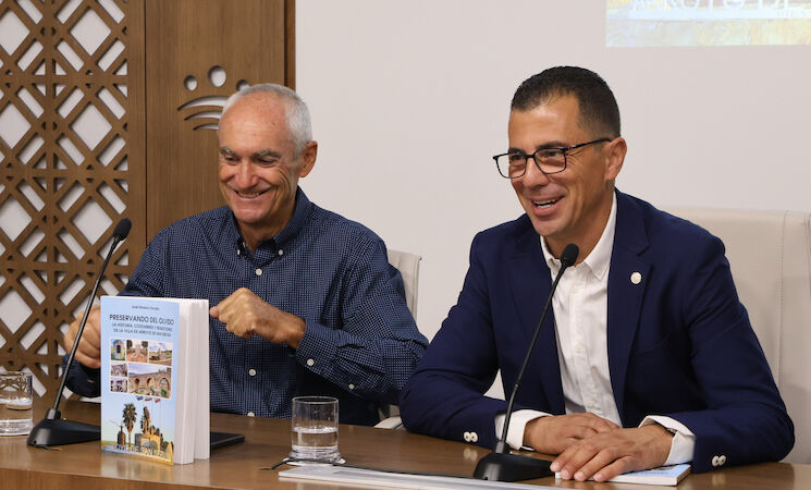 El diputado de Publicaciones, Imprenta y BOP, Raúl Jareño, acompañado por el jefe del Servicio de Publicaciones e Imprenta, Alejandro Mendoza, presentó el libro.