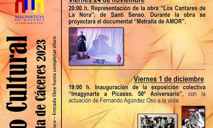 Así pues, el objetivo de este programa, que se celebrará hasta el 2 de diciembre, es ofrecer "alternativas culturales", tanto a los malpartideños, como a los visitantes, con actividades que tendrán entrada libre hasta completar aforo en la Casa Municipal de Cultura, según ha explicado el Ayuntamiento de Malpartida de Cáceres en una nota de prensa.