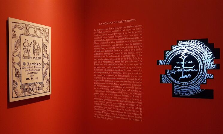 La exposición "Malos libros, la censura en la España moderna", que puede visitarse en la Biblioteca Nacional de España hasta el próximo 11 de febrero de 2024, incluye una reproducción de la nómina-amuleto de Fernão Brandão, encontrado en la biblioteca emparedada de Barcarrota.