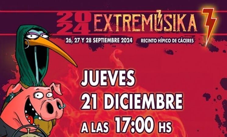 El festival Extremúsika de Cáceres, que celebrará su próxima edición los días 26, 27 y 28 de septiembre de 2024 en el recinto hípico, activa este jueves, 21 de diciembre, su cupo de venta de entradas a partir de las 17,00 horas.