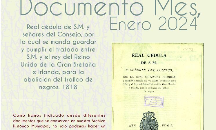 El Palacio de la Isla de la Isla en Cáceres expone en enero, dentro de su programa de difusión 'Documentos del mes', la Real Cédula de S.M. y señores del Consejo, por la cual se manda guardar y cumplir el tratado entre S.M. y el rey del Reino Unido de la Gran Bretaña e Irlanda, para la abolición del tráfico de negros de 1818.