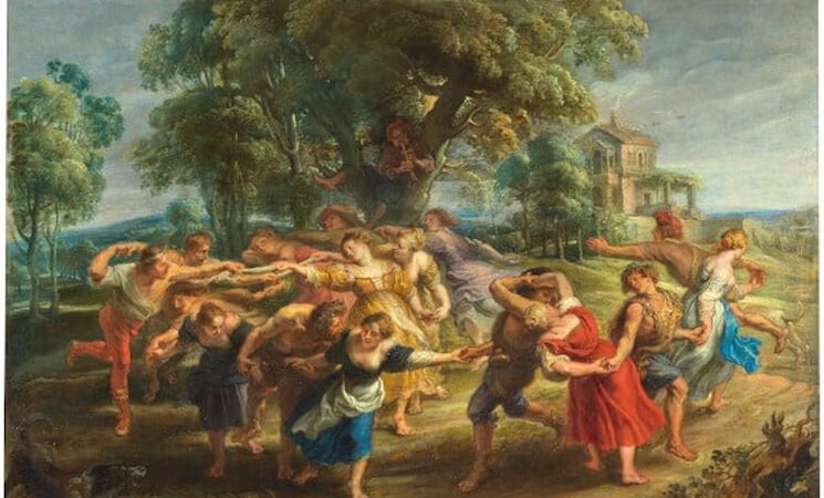 Le siguen 'Autorretrato en el estudio', de Paret; 'Séneca después de abrirse la venas', de Domínguez; 'David vencedor de Goliat', de Caravaggio; 'Tres músicos ambulantes', de Jordaens; 'Paisaje con músicos', de Grimaldi; 'Danza de personajes mitológicos y aldeanos', de Rubens; 'Fiesta aldeana', de Teniers; 'En el baile', de Mestres; 'El caballero del reloj', de Tiziano; 'Marte', de Velázquez; 'La construcción de la Torre de Babel', de Franken II; 'Prometeo', de Rubens, y 'El triunfo de la muerte', de Brueghel el Viejo.
