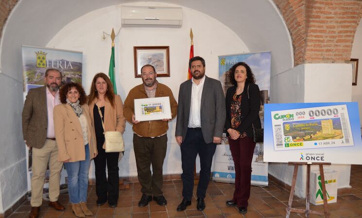 En concreto, el cupón dedicado al Castillo de Feria ha sido presentado este jueves en esta localidad pacense por el delegado de la ONCE en Extremadura, Fernando Iglesias, y el alcalde, Marcelo Pérez, acompañados de la concejala de Turismo, Juana Gebrero, y de representantes de distintas asociaciones locales.