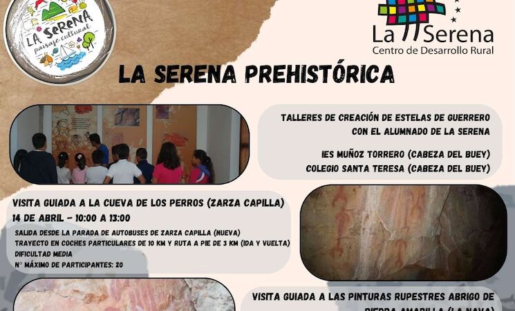 Estas actividades comprenden la realización de talleres de creación de estelas de guerrero en los centros educativos de la localidad de Cabeza del Buey, una serie de visitas a los abrigos de pinturas esquemáticas mejor conservados de La Serena y una representación teatralizada de un enterramiento megalítico, que tendrá lugar en el dolmen de Magacela.