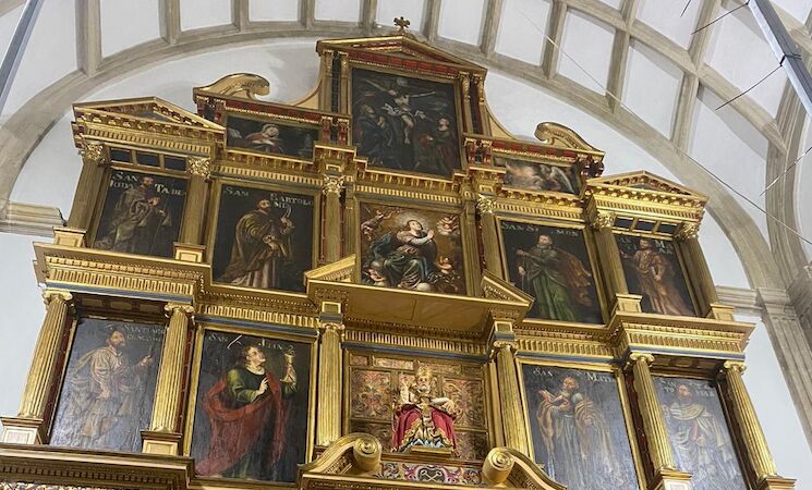 Asimismo, cuenta con un programa iconográfico novedoso en la retablística española al representar a todo el apostado en las tablas y desplazando a San Pablo y San Pedro al primer cuerpo, en lugar de flanquear el sagrario, como era costumbre en la época.