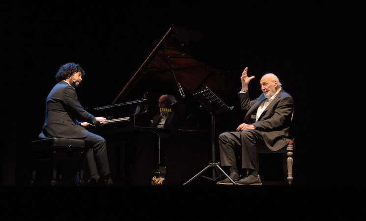 Casi como un co?mplice, en este viaje a la memoria, lo acompan?a musicalmente Juan Esteban Cuacci, desde el piano.