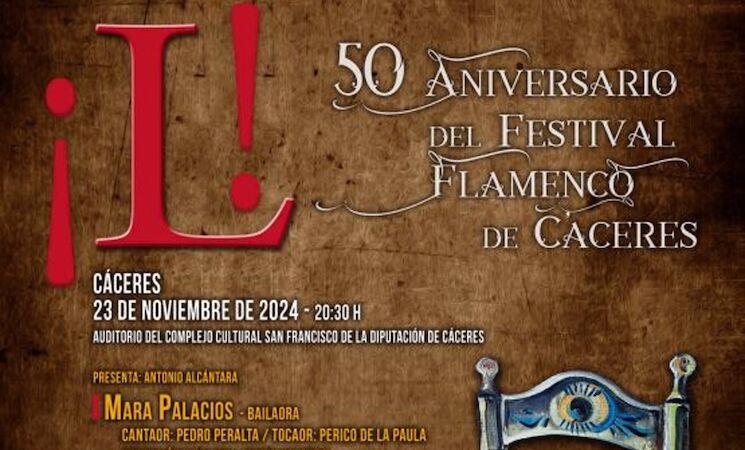 Para ello, el cartel de los artistas intervinientes en el L Festival Flamenco de Cáceres "presenta un elenco de primerísimo nivel en el panorama flamenco" con la presencia de la bailaora Mara Palacios, que aporta "un espectáculo versátil y pleno de sutilezas abordando el baile desde el conocimiento, la afición y rebosante de garra, nervio y vitalidad", según informa la organización.