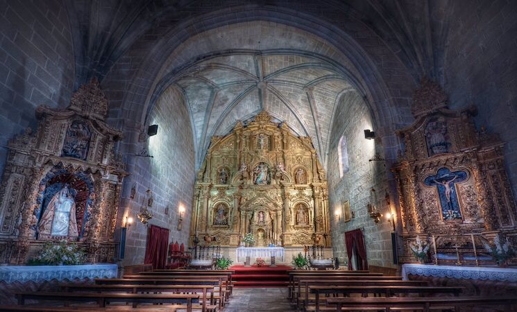 En concreto, se trata de un edificio singular donde se fusionan elementos góticos y renacentistas, en el que destaca la portada oeste de estilo plateresco, atribuida a Sebastián de Aguirre, mientras que en su interior alberga un retablo de estilo rococó.