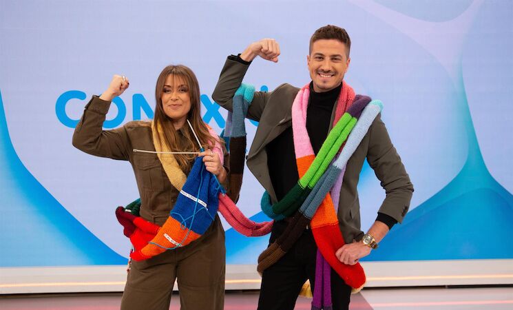 Desde noviembre, 45 municipios extremeños que acudieron al magazine cada tarde, se unieron en una cadena solidaria única basada en tejer una bufanda.