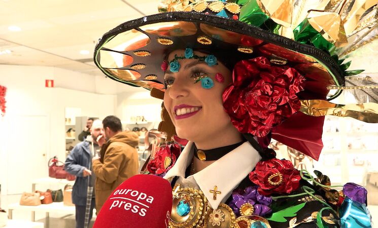 Los vistosos trajes de las comparsas que participaron este pasado domingo en el gran desfile del Carnaval de Badajoz, Fiesta de Interés Turístico Internacional, han podido apreciarse este lunes en una exposición en las instalaciones de El Corte Inglés, donde miembros de las agrupaciones han hecho de maniquíes vivientes y han permitido al público observar cada detalle de sus elaboradas vestimentas.