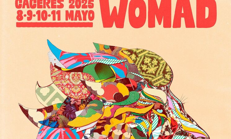 La propuesta del cartel Womad Cáceres 2025, es obra de Luis Toledo "Laprisamata", encapsula la esencia multicultural del festival a través de una majestuosa cabeza de león construida con fragmentos de estampados de distintas culturas.