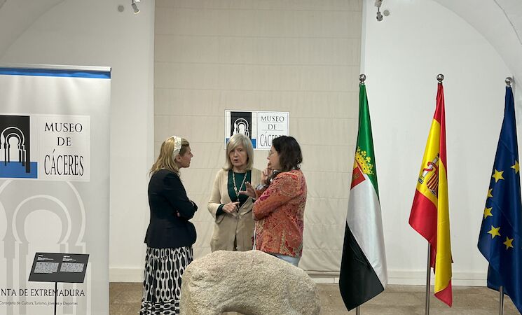 El Museo de Cáceres ha acogido el acto de presentación de la pieza, con la presencia de la Consejera de Cultura, Turismo, Jóvenes y Deportes, Victoria Bazaga, junto a la directora general de Bibliotecas, Archivos y Patrimonio Cultural, Adela Rueda y la directora del museo, Raquel Preciados.