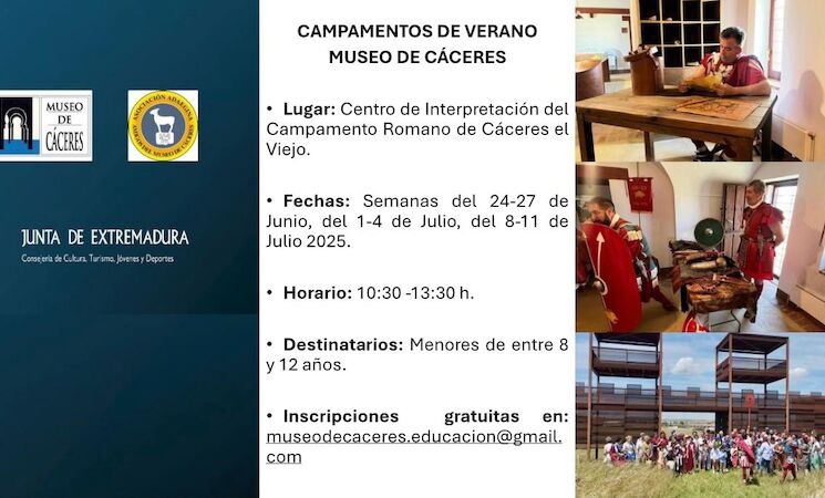 Estos campamentos, de carácter gratuito requieren de inscripción previa mediante un correo electrónico que hay que enviar al Museo de Cáceres y la inscripción será por estricto orden de recepción, según ha apuntado la directora.