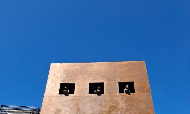 Hecha en hierro y bronce, con cinco metros de alto y 2x2 metros de base, la obra escultórica 'Patio de Luces', de José María Larrondo, ya luce en los jardines de la Biblioteca Pública Bartolomé J. Gallardo de Badajoz, por expreso deseo del artista, que donó la obra a la Junta en 2022.