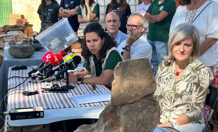La consejera ha recordado que Casas del Turuñuelo no ha dejado de asombrar al mundo con descubrimientos que están reescribiendo la historia del Mediterráneo Occidental, como las representaciones humanas descubiertas en campañas anteriores o la placa de pizarra con un posible abecedario paleohispánico meridional.