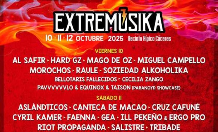 La representación extremeña tampoco faltará este año en Extremúsika con las actuaciones de Canchalera, Cecilia Zango, Bellotaris Fallecidos, Black Trick y Pavvvvvvlo & Equinox & Tai-son.