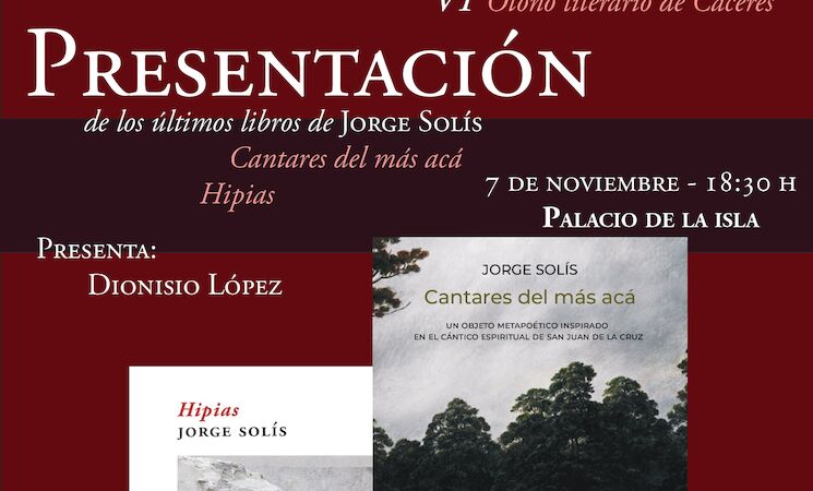 Por último, poesía y teatro llegarán el viernes 7 de la mano de Jorge Solís que presentará “Cantares del más acá” e “Hipias”, en el Palacio de la Isla a las 18:30 horas.