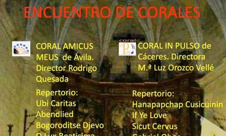 En concreto, el evento, que tendrá lugar a las 20:30 horas, reunirá a dos formaciones corales de reconocido nivel: la Coral Amicus Meus, de Ávila, dirigida por Rodrigo Quesada, y la Coral In Pulso de Cáceres, bajo la dirección de María Luz Orozco Vellé.