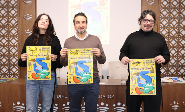 La Diputación de Badajoz ha acogido la presentación de Rayito Fest, un nuevo festival dedicado al cómic, los fanzines y la obra gráfica que celebrará su primera edición el 6 de diciembre en el Hospital Centro Vivo; con la asistencia del diputado de Identidad Cultural, Deporte y Juventud, Ricardo Cabezas, y los organizadores del evento, Cisco Martínez y Sara Herculano.