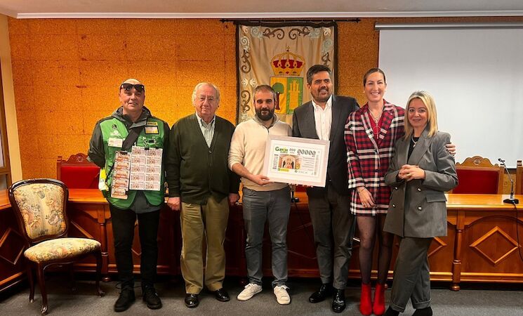 El cupón dedicado a la Virgen de la Consolación del Castillo ha sido presentado este martes en la localidad cacereña de Montánchez por parte del delegado de la ONCE de Extremadura, Fernando Iglesias, y el alcalde del municipio, Joaquín Plana, acompañados por la directora de ONCE en Cáceres, Isabel Góngora, o el presidente de la Cofradía la Virgen de la Consolación del Castillo, Agustín Pérez.