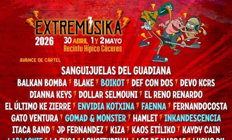 El festival Extremúsika, que volverá al recinto ferial de Cáceres en primavera, ya ha confirmado más de 40 grupos con los extremeños Sanguijuelas del Guadiana como cabeza de cartel.