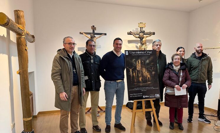Con motivo del 40º aniversario de la Cofradía del Cristo Negro de Cáceres, el concejal de Cultura, Jorge Suárez, junto al mayordomo de la Hermandad, Alonso Corrales, han presentado la exposición ‘Una misma cruz’.