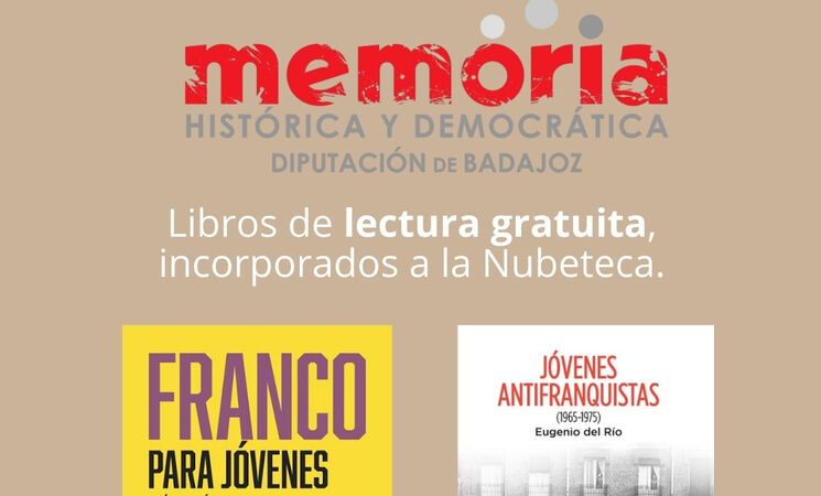 El catálogo Nubeteca de la Diputación de Badajoz ha colgado dos nuevos títulos gratuitos sobre Memoria Histórica, como son 'Franco para jóvenes', de José Antonio Martín Soler y Erik Martínez Westley, y 'Jóvenes antifranquistas (1965-1975)', de Eugenio del Rio.