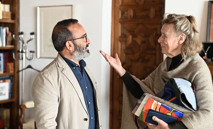 El presidente de la Diputación de Cáceres, Miguel Ángel Morales, se ha reunido este miércoles con la escultora holandesa Lucia Beijlsmit, residente en la localidad cacereña de Salorino desde el año 2004.