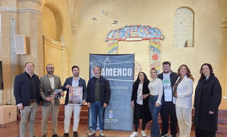 El concejal de Cultura del Ayuntamiento de Badajoz, José Antonio Casablanca, junto a algunos de los artistas participantes, ha presentado esta nueva edición de un ciclo que pone en valor y difunde el flamenco y especialmente el de la tierra ligado a la Plaza Alta, un enclave "flamenco" y con tanta historia y cultura, con artistas de la región que son "la mejor bandera posible" para el flamenco, Extremadura y Badajoz.