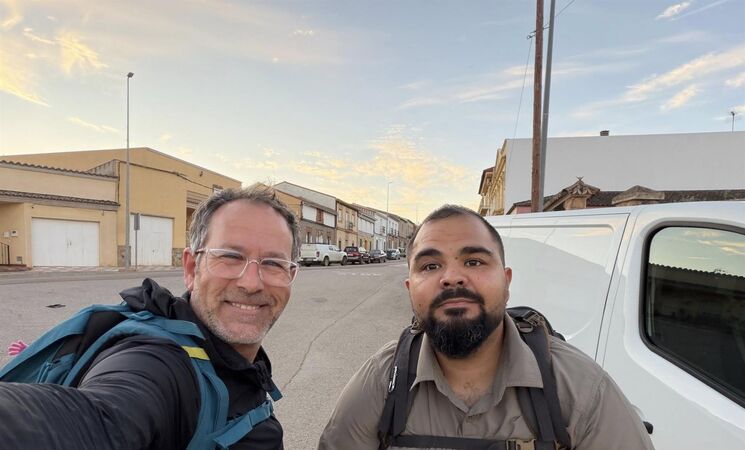 El alcalde de Manchita y miembro de la asociación de municipios 'Condado del Guadiana', Juan Carlos Ruiz Velarde, junto al ex-alcalde de Gargáligas y historiador Andrés Bravo Carrasco, han iniciado una caminata para promover un nuevo ramal del Camino Romano a Guadalupe en la comarca de las Vegas Altas del Guadiana.