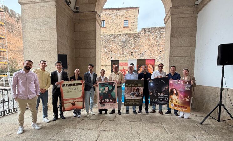 "Es una propuesta pensada para públicos amplios, desde aficionados al flamenco a nuevos públicos jóvenes que buscan esa música, ese baile y sobre todo que buscan el buen ambiente", ha dicho el alcalde de Cáceres, Rafael Mateos, que ha presentado este martes el calendario de conciertos junto a los promotores, Fran Chávez, de Ágora Espectáculos, y Antonio Merino, de Javenex.