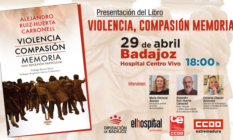 En concreto, la presentación se llevará a cabo en el Hospital Centro Vivo de Badajoz a partir de las 18:00 horas con entrada libre, y contará con las intervenciones de la secretaria general de CCOO de Extremadura, María Berrocal, y la presidenta de la Fundación Cultura y Estudios de CCOO de Extremadura, Encarna Chacón. Además, participará el vicepresidente primero de la Diputación de Badajoz, Juan María Delfa.