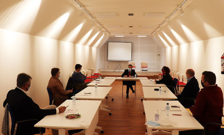 El presidente de la Diputación de Badajoz, Miguel Ángel Gallardo, se ha reunido con los representantes de los cinco clubes de fútbol que militan en Segunda División B: UD Extremadura, CD Badajoz, Mérida AD, CD Don Benito y CF Villanovense.