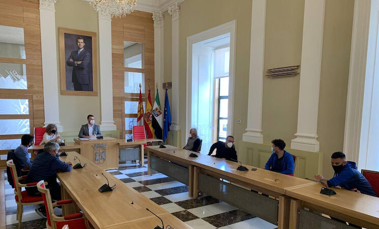 El alcalde de Cáceres, Luis Salaya, y la concejala de Deporte, Paula Rodríguez, han recibido este miércoles a directivos y jugadores del CP Cacereño y del CD Diocesano para mostrarles el apoyo de la institución en la fase de ascenso a Segunda División RFEF que se inicia este fin de semana, en la que el Cacereño se enfrentará al Moralo CP en Navalmoral de la Mata, y el Diocesano al CD Coria, en la localidad cauriense.