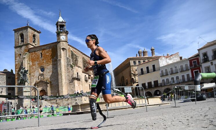 Tras realizar la transición, los paratriatletas tenían por delante un segmento de ciclismo de seis kilómetros por las calles de Trujillo y la carretera Ex 208 en dirección a Monfragüe, para finalizar con la subida por la calle Constitución para dar el relevo a su pareja.