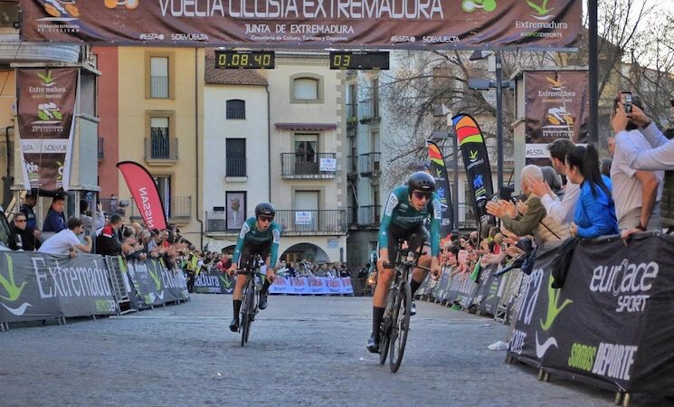 El corredor Diego Uriarte, del equipo Finisher, se ha colocado líder de la Vuelta Ciclista a Extremadura y, en la crono, se ha impuesto a la marca de 9:01 del Padronés Cortizo, y al Eolo Kometa, que completó el recorrido en 9:02. Un total de 140 corredores y 20 equipos han disputado esta etapa de 6 kilómetros de recorrido urbano con salida a las 18,00 horas en la Plaza Mayor.