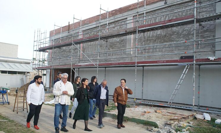 Inicio / Deportes / Flores visita las obras de adecuación y mejora de la piscina climatizada de Montijo