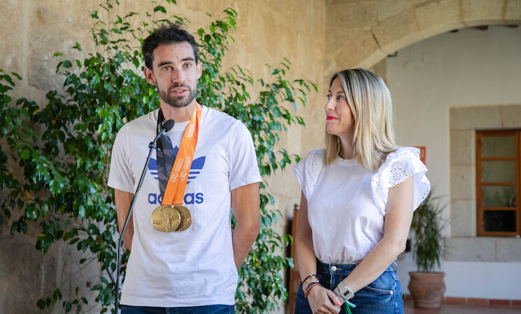 El bicampeón mundial, el marchador extremeño Álvaro Martín Uriol, ha sido recibido por la presidenta de la comunidad, María Guardiola, y celebrará en Llerena con sus familiares, amigos y vecinos la gesta alcanzada en tierras húngaras.