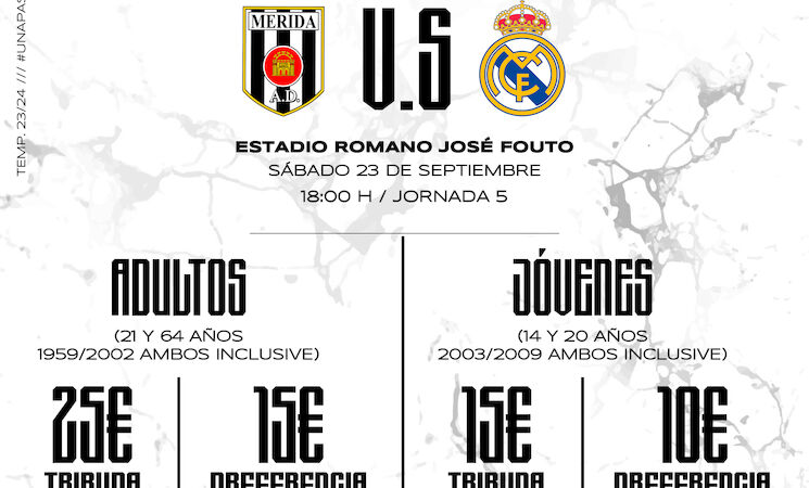 Desde el club romano destacan que las entradas ya se pueden adquirir de manera online en admerida.acyti.com. También se podrán a la venta en la Tienda Oficial el próximo lunes, 18 de septiembre, de 11:00 a 14:00 y de 17:00 a 20:00 horas y hasta el viernes 15 de septiembre.