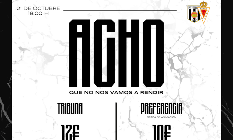 Además, las entradas ya se pueden adquirir de manera online, a cualquier hora, en admerida.compralaentrada.com y en la Tienda Oficial de 11:00 a 14:00 y de 17:00 a 20:00 horas hasta el viernes 20 de octubre.