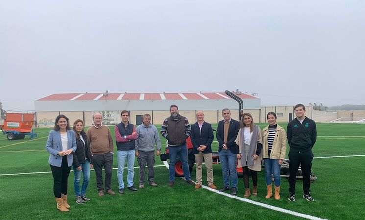 El diputado del Área de Infraestructuras, Movilidad y Ordenación del Territorio de la Diputación de Badajoz, Abel González, junto con el alcalde de Trujillanos, Alejandro Guerrero, concejalas del ayuntamiento y el presidente del club de fútbol, han visitado las obras de remodelación y acondicionamiento del campo de fútbol de la localidad.
